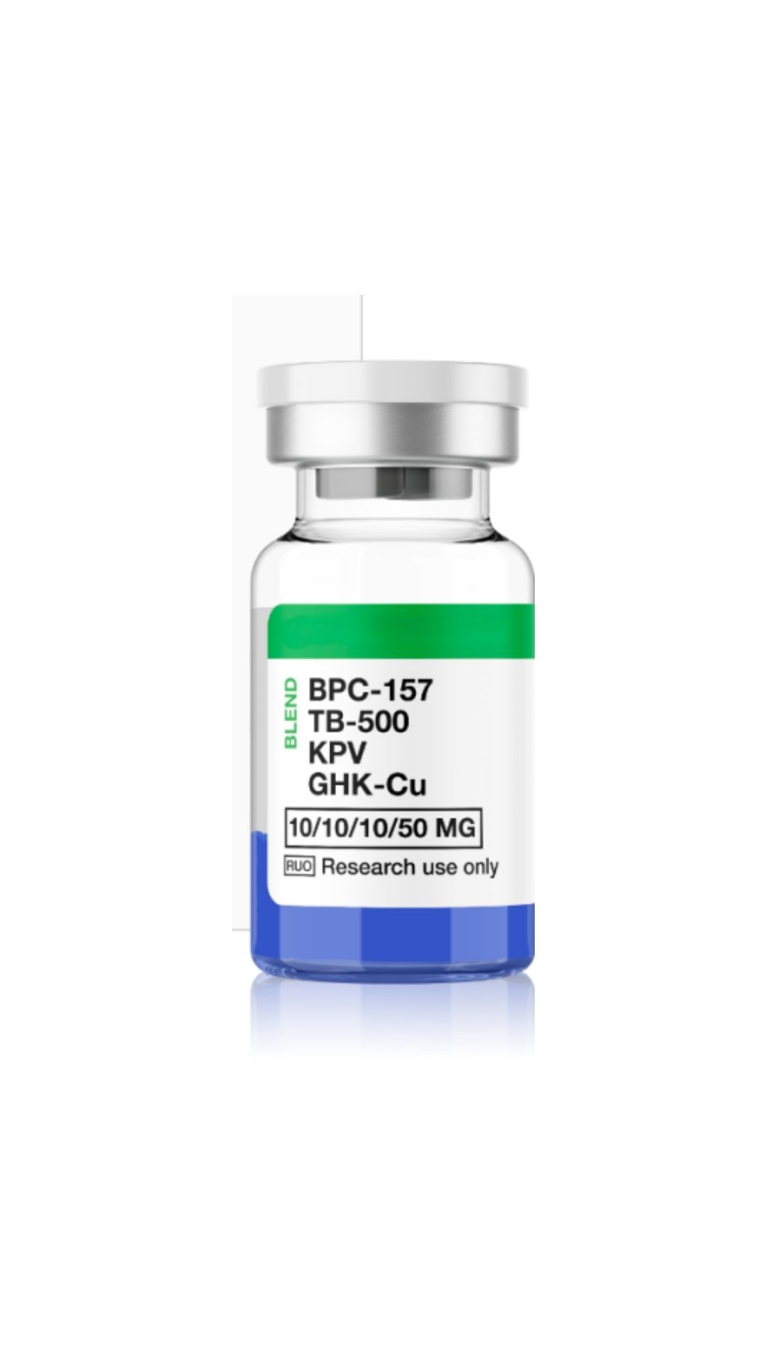 Bu peptitlerin sinerjik iyileştirici özelliklerinin araştırılmasına yardımcı olmak amacıyla BPC-157 + TB500 (Thymosin Beta 4) + GHK-Cu + KPV karışımı oluşturulmuştur. Bu karışım, bu peptitlerin sipariş edilmesini, saklanmasını, dozlanmasını ve uygulanmasını kolaylaştırarak araştırmacıların birden fazla bireysel peptit için protokol oluşturmak yerine sonuçların ölçümüne ve deney tasarımına odaklanmasını sağlar.