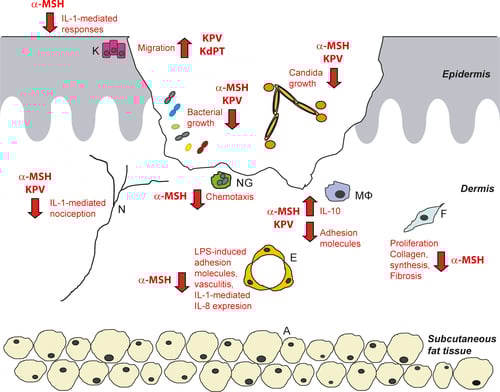 KPV’nin (ve diğer alfa-MSH türevlerinin) yara iyileşme sürecindeki etkilerine genel bakış.
